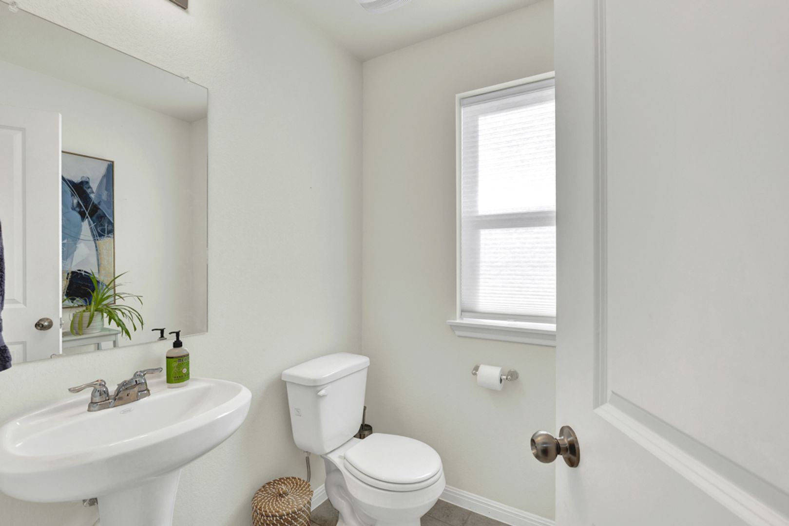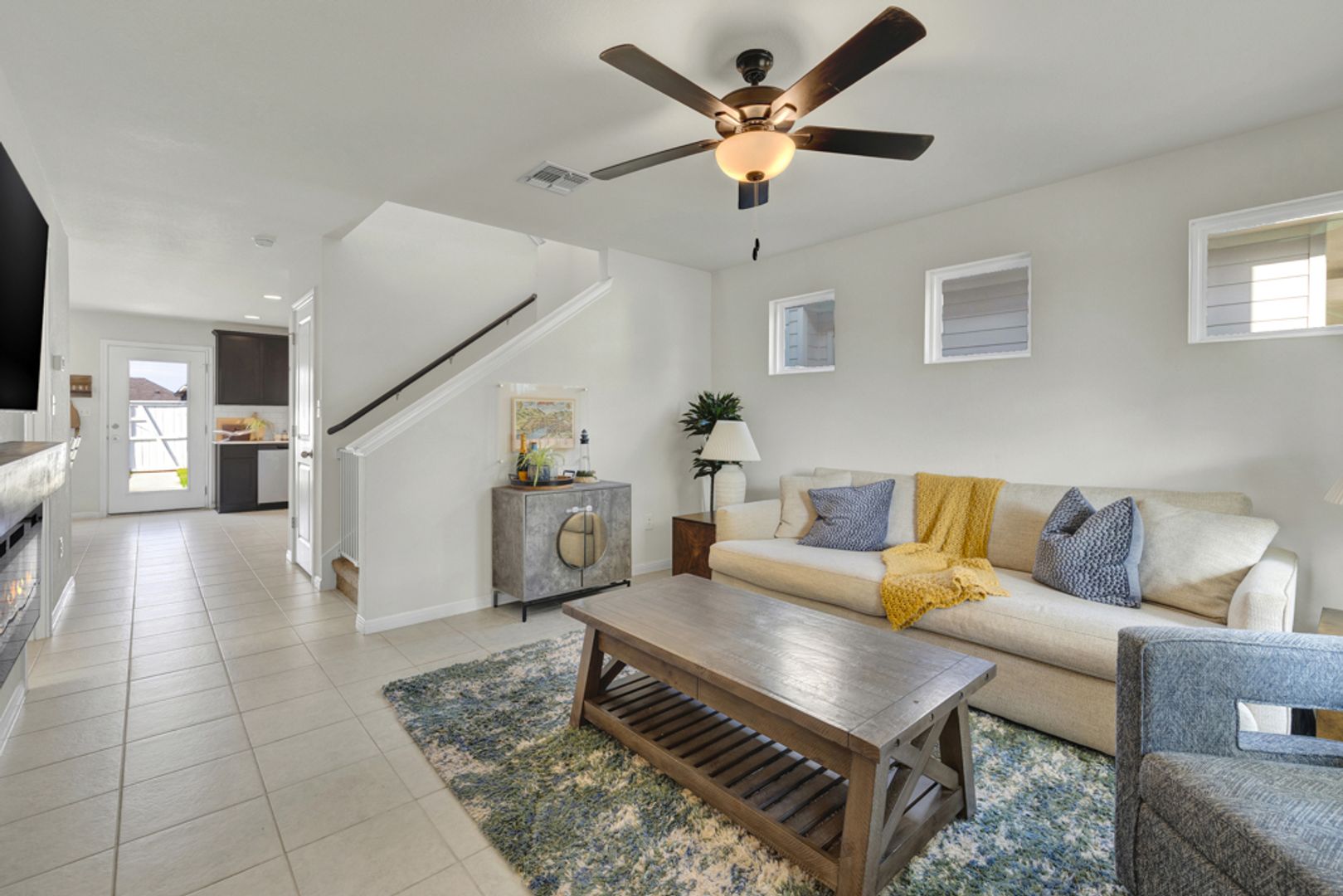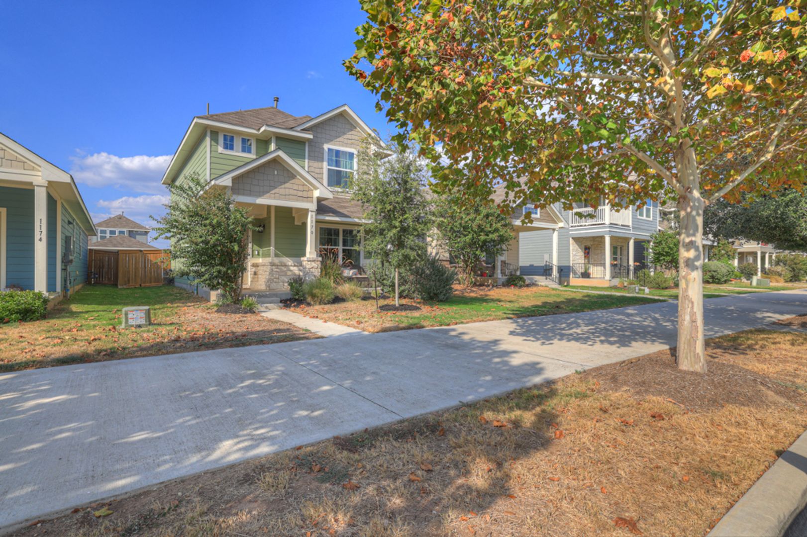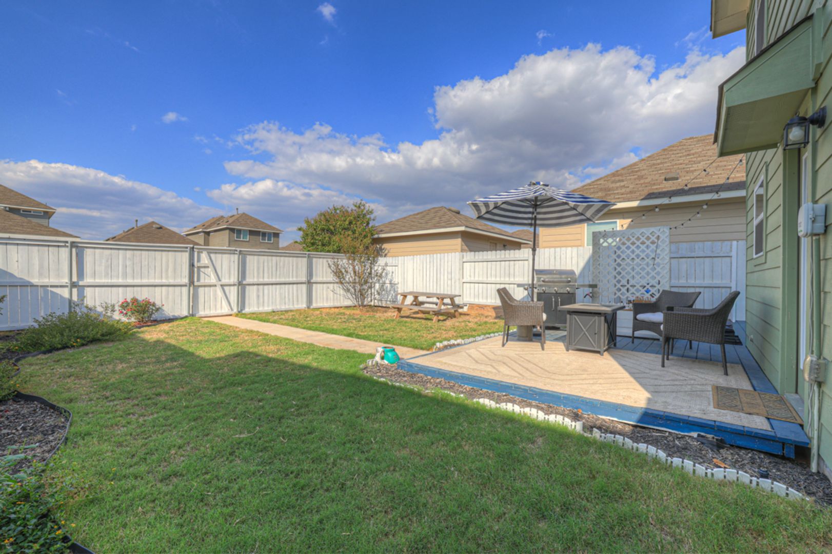 Blending both comfort and community, this thoughtfully designed, well maintained, home offers the perfect setting to unwind, entertain, and enjoy all that the thriving Trace neighborhood has to offer. Just steps from the Presidio Amenity Center and Rodriguez Elementary School, this charming residence welcomes you with a Craftsman style front porch and 12 foot wide side walks, perfect for decorating, morning coffee, or evening strolls. Inside, you'll be greeted by an open floorpan with large fixed windows offering an abundance of natural light. You'll also find a modern kitchen featuring stainless steel appliances, an elevated light fixture, a spacious pantry, and plenty of counter space, as well as thoughtful details like a half bathroom downstairs and ample under the stairs storage. Upstairs, the primary suite is a relaxing retreat with a ceiling fan, a large window that fills the space with natural light, and an ensuite, accompanied by two additional bedrooms perfect for family, guests, or a home office, and a full bathroom. This home is complete with the perfect outdoor entertaining space featuring a deck and fully fenced backyard, ideal for weekend cookouts or a quiet evening under the Texas stars. Nestled in the picturesque Trace community with a resort style pool, covered pavilion, basketball and sand volleyball courts, scenic nature trails, and beautiful parks throughout, easy access to I-35, Texas State University and shopping, this home is ready for its next chapter!