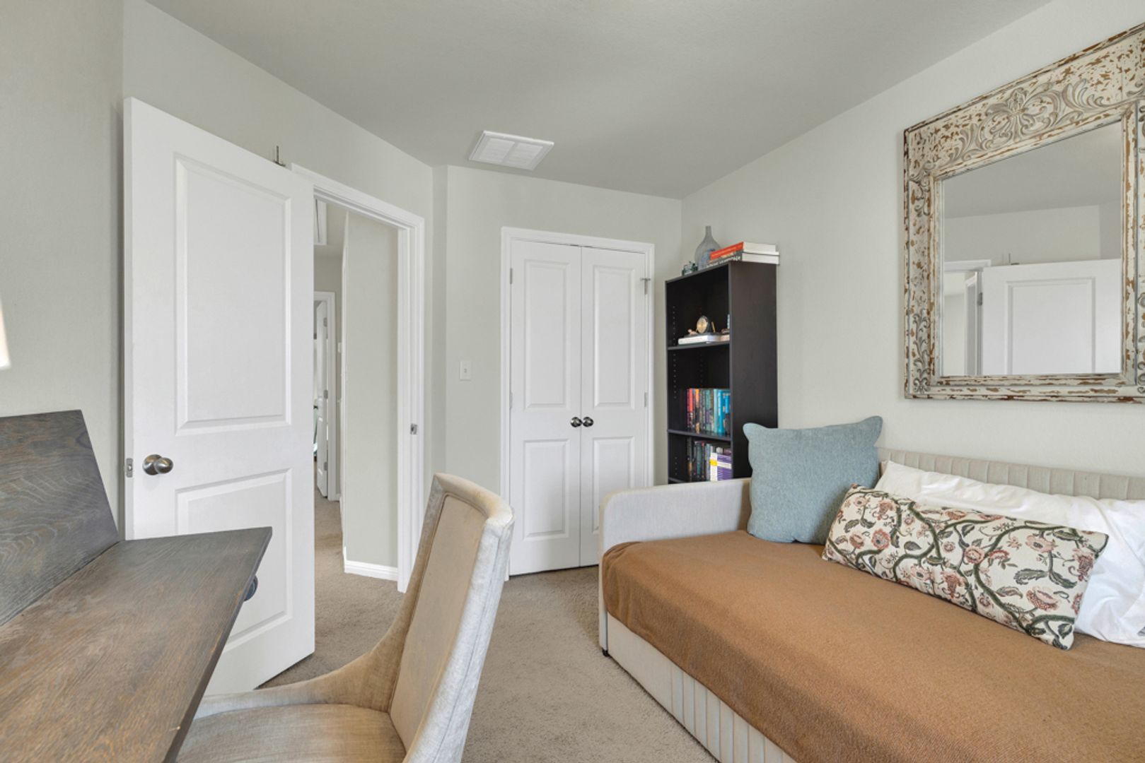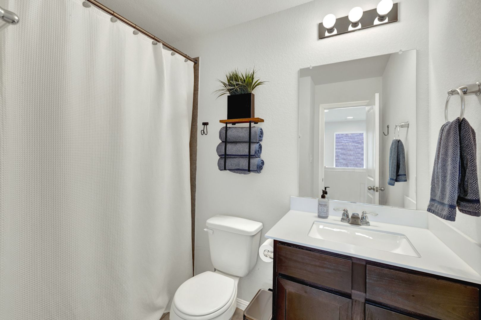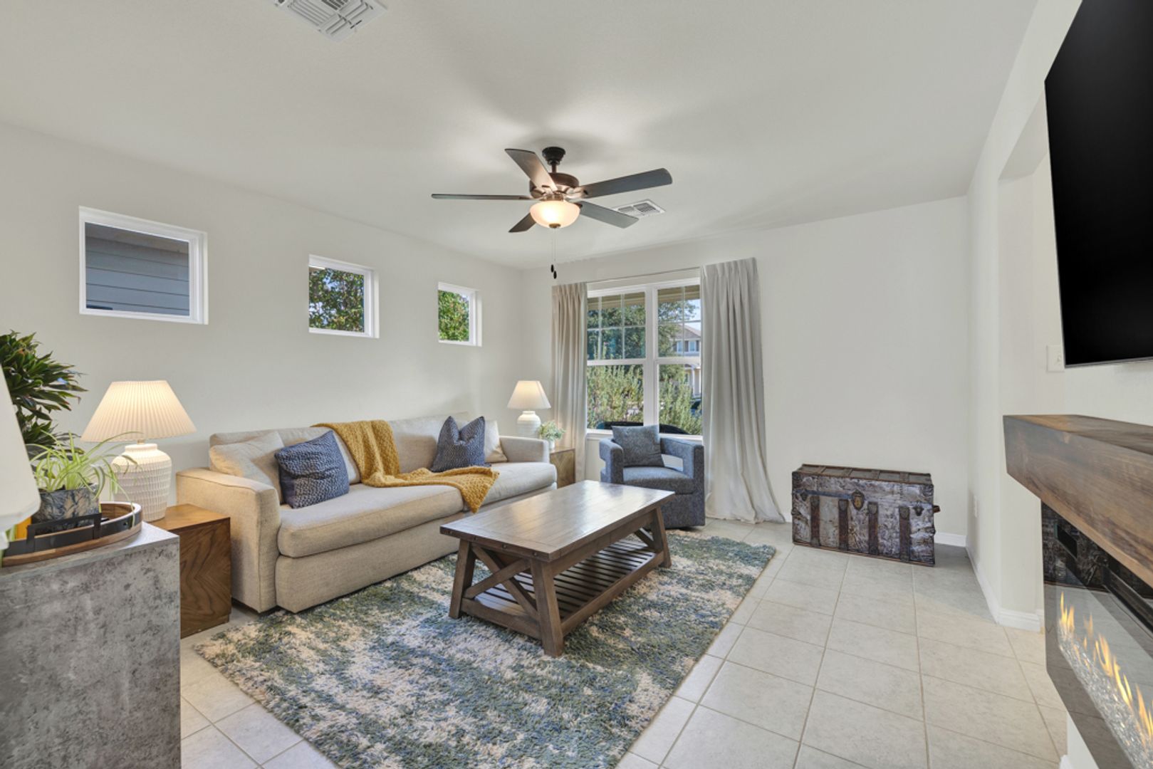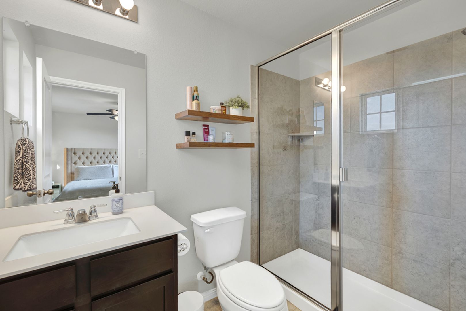 Blending both comfort and community, this thoughtfully designed, well maintained, home offers the perfect setting to unwind, entertain, and enjoy all that the thriving Trace neighborhood has to offer. Just steps from the Presidio Amenity Center and Rodriguez Elementary School, this charming residence welcomes you with a Craftsman style front porch and 12 foot wide side walks, perfect for decorating, morning coffee, or evening strolls. Inside, you'll be greeted by an open floorpan with large fixed windows offering an abundance of natural light. You'll also find a modern kitchen featuring stainless steel appliances, an elevated light fixture, a spacious pantry, and plenty of counter space, as well as thoughtful details like a half bathroom downstairs and ample under the stairs storage. Upstairs, the primary suite is a relaxing retreat with a ceiling fan, a large window that fills the space with natural light, and an ensuite, accompanied by two additional bedrooms perfect for family, guests, or a home office, and a full bathroom. This home is complete with the perfect outdoor entertaining space featuring a deck and fully fenced backyard, ideal for weekend cookouts or a quiet evening under the Texas stars. Nestled in the picturesque Trace community with a resort style pool, covered pavilion, basketball and sand volleyball courts, scenic nature trails, and beautiful parks throughout, easy access to I-35, Texas State University and shopping, this home is ready for its next chapter!