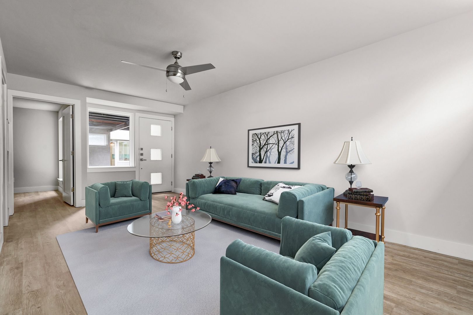 Each unit offers an open floor plan filled with faux wood floors throughout, stainless steel appliances, custom cabinets, solid surface countertops, and loads of other modern finishes.
