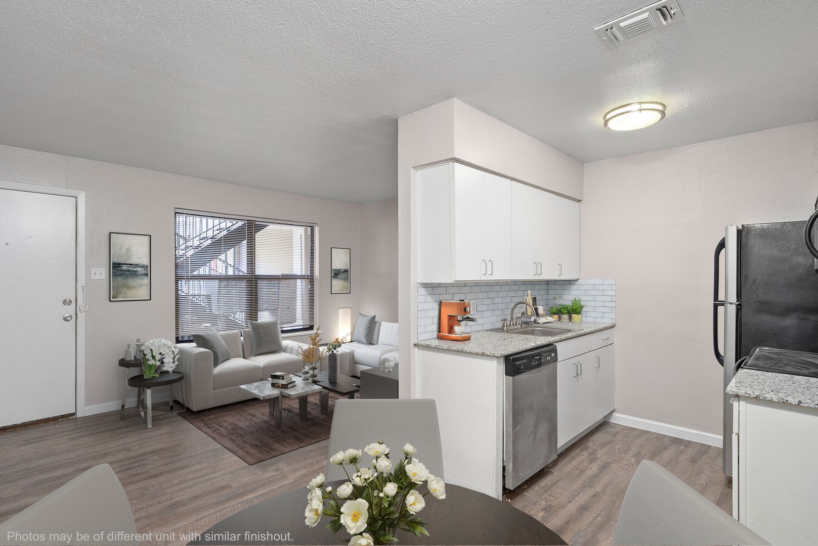 The spacious, modern, updated interior boasts solid flooring throughout, stainless steel appliances, quartz countertops, large closets, fresh paint, and all new fixtures. The courtyard in the community also offers a shared laundry facility and a sparking pool for those hot Texas summers.