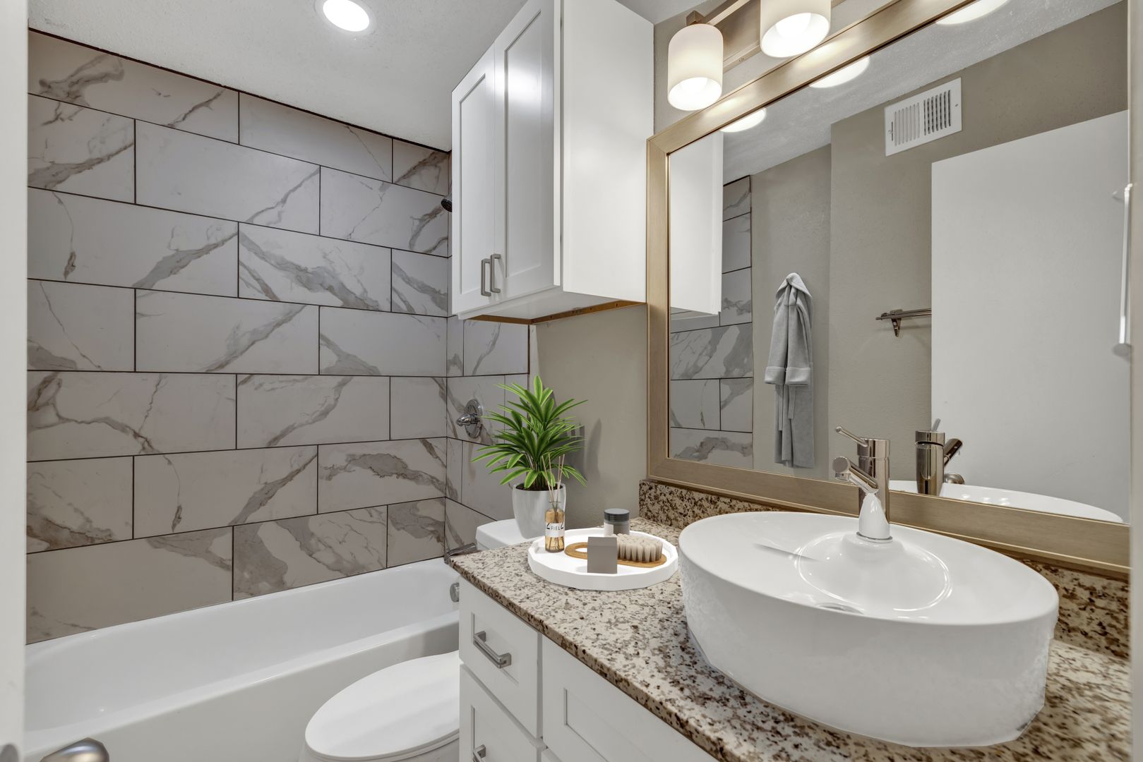 The spacious, modern, updated interior boasts solid flooring throughout, stainless steel appliances, quartz countertops, large closets, fresh paint, and all new fixtures. The courtyard in the community also offers a shared laundry facility and a sparking pool for those hot Texas summers.