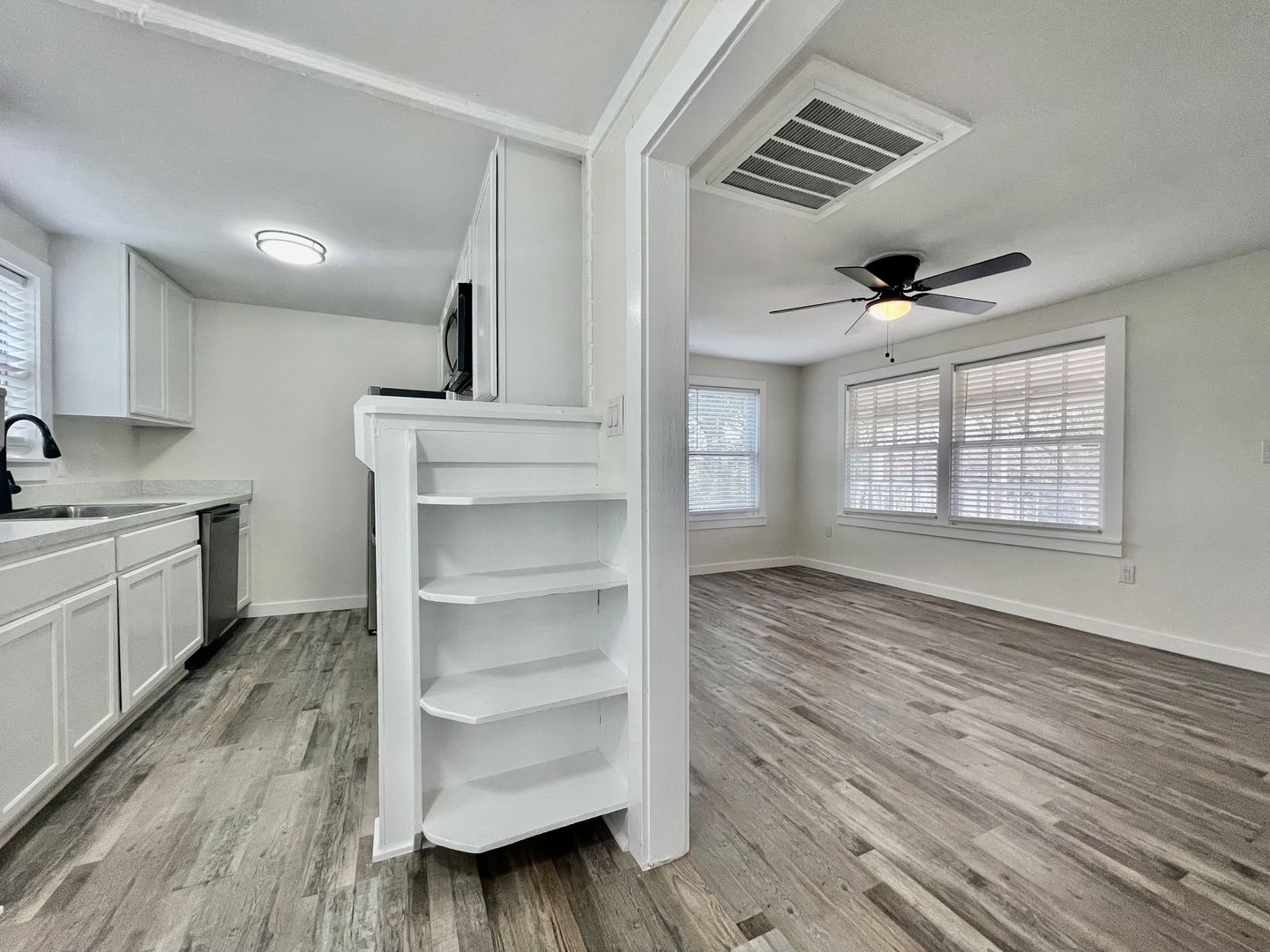Residents also enjoy access to a shared, fenced yard—perfect for relaxing outdoors. Ideally located just one block from the Texas State University campus and near a bus route, this San Marcos apartment offers excellent walkability, easy commuting, and a highly desirable location close to campus amenities.