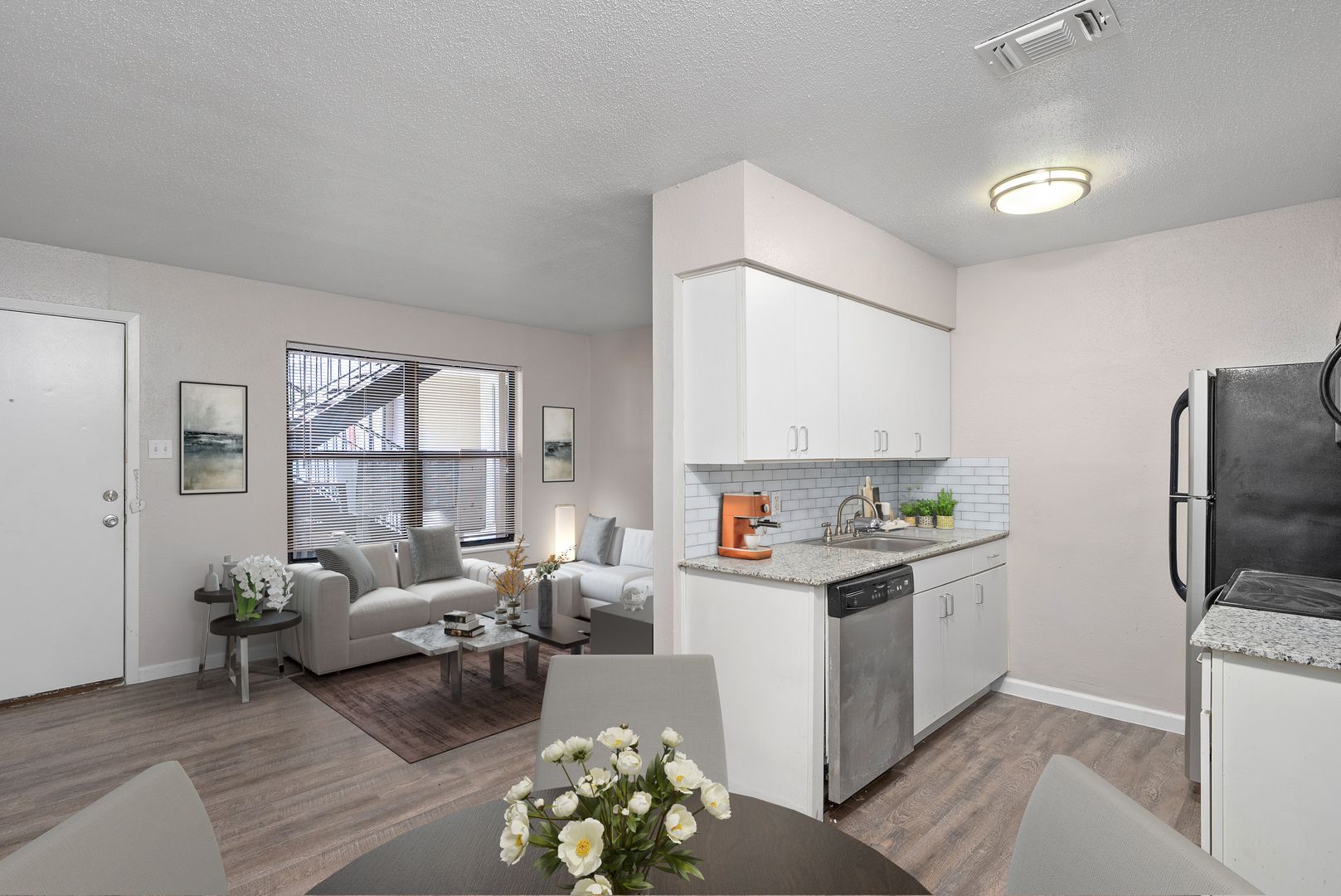 The spacious, modern, updated interior boasts solid flooring throughout, stainless steel appliances, quartz countertops, large closets, fresh paint, and all new fixtures. The courtyard in the community also offers a shared laundry facility and a sparking pool for those hot Texas summers.
