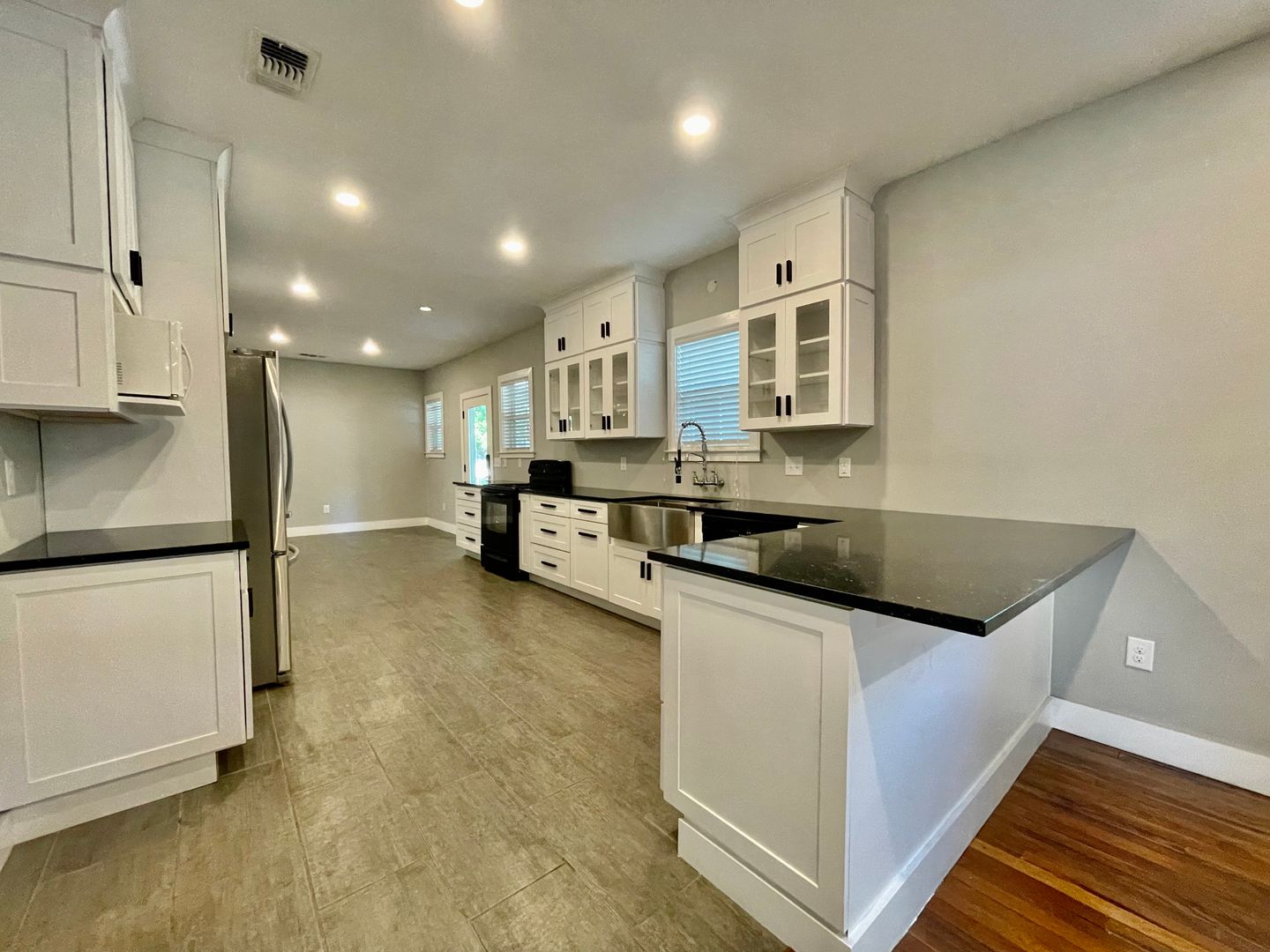 Where charm meets chic sophistication, this modern farmhouse offers hardwood floors in all the bedrooms and living areas and tile in the kitchen and baths. The kitchen features quartz countertops, large single basin sink, an abundance of custom cabinetry with soft-close drawers and cabinets, glass displays, large side-by-side pantry with pull out shelves, updated appliances and many more thoughtfully designed spaces that make everyday use and entertaining a joy. Modern conveniences like central AC and heat, double-pane windows and tankless water heater ensure year-round comfort and energy efficiency. Luxurious details abound from the custom primary walk-in closet, to the spa-like walk-in shower, providing both style and functionality. Spacious Bedrooms is an understatement!