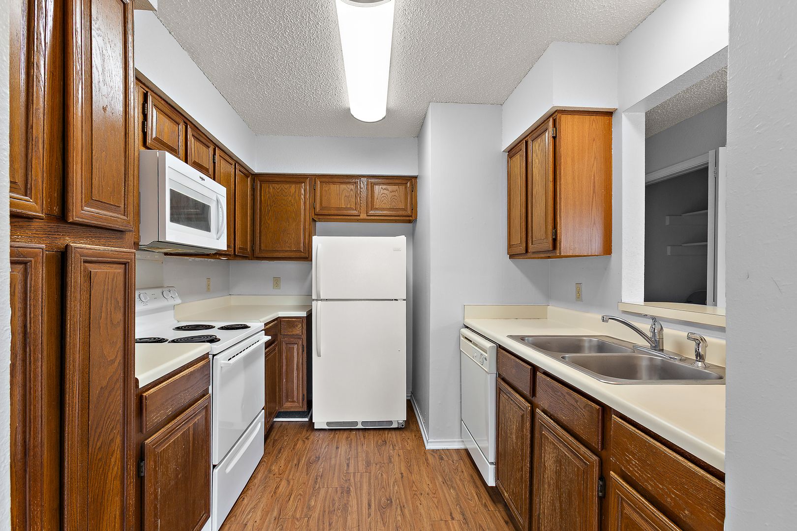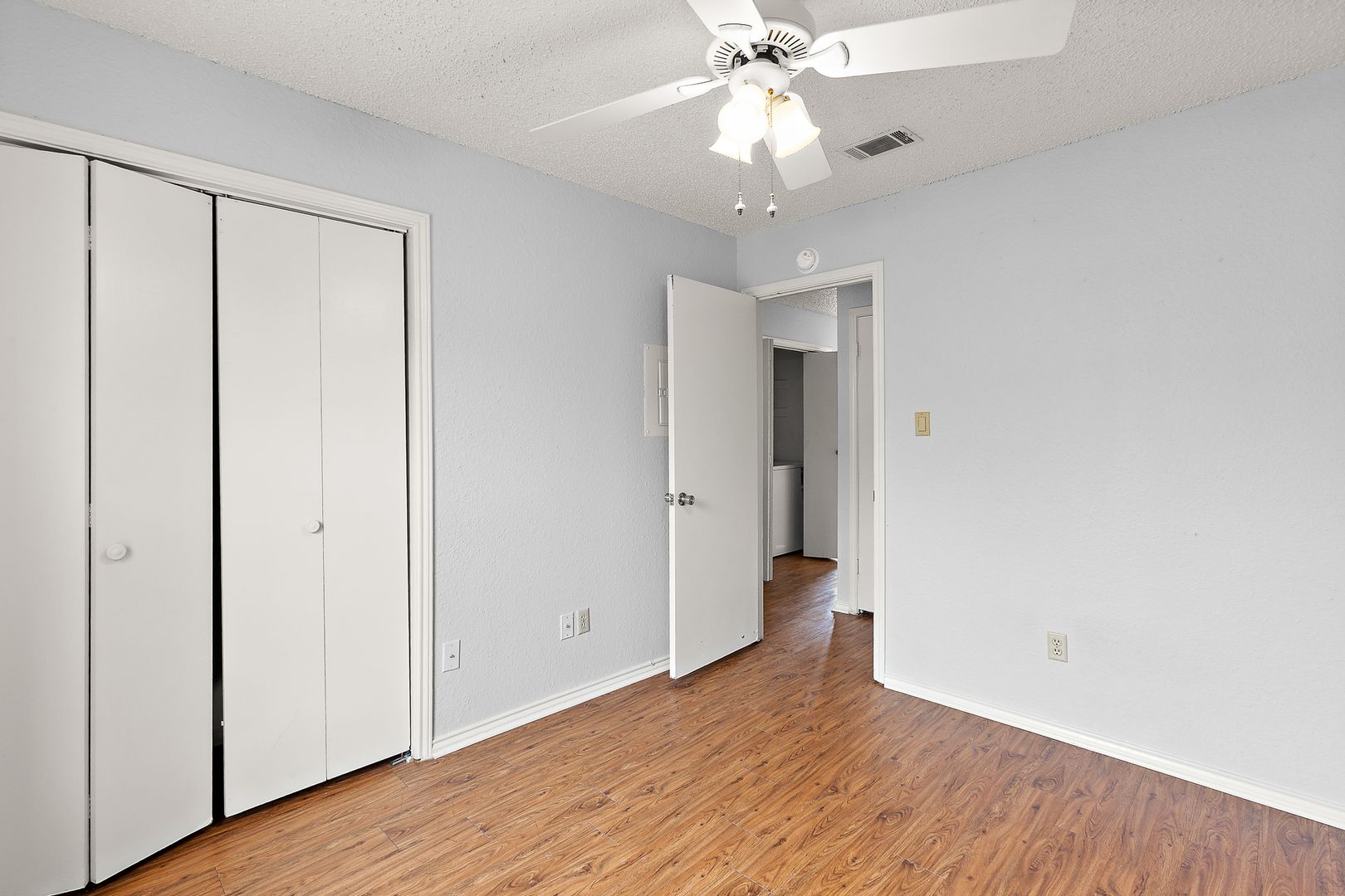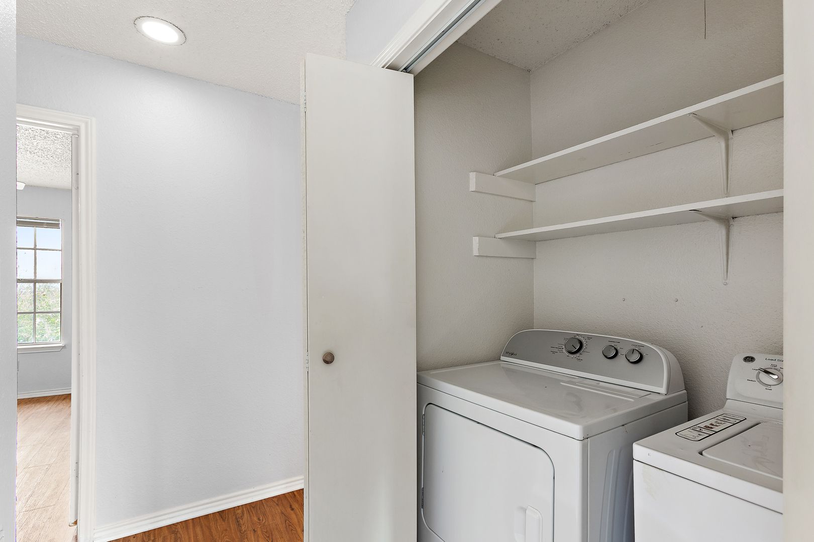 Spacious 2 bedroom, 1 bathroom upstairs apartment with fresh paint, hard surface flooring in living areas and carpet in the bedrooms, washer and dryer included, multiple extra storage closets, natural light and much much more!