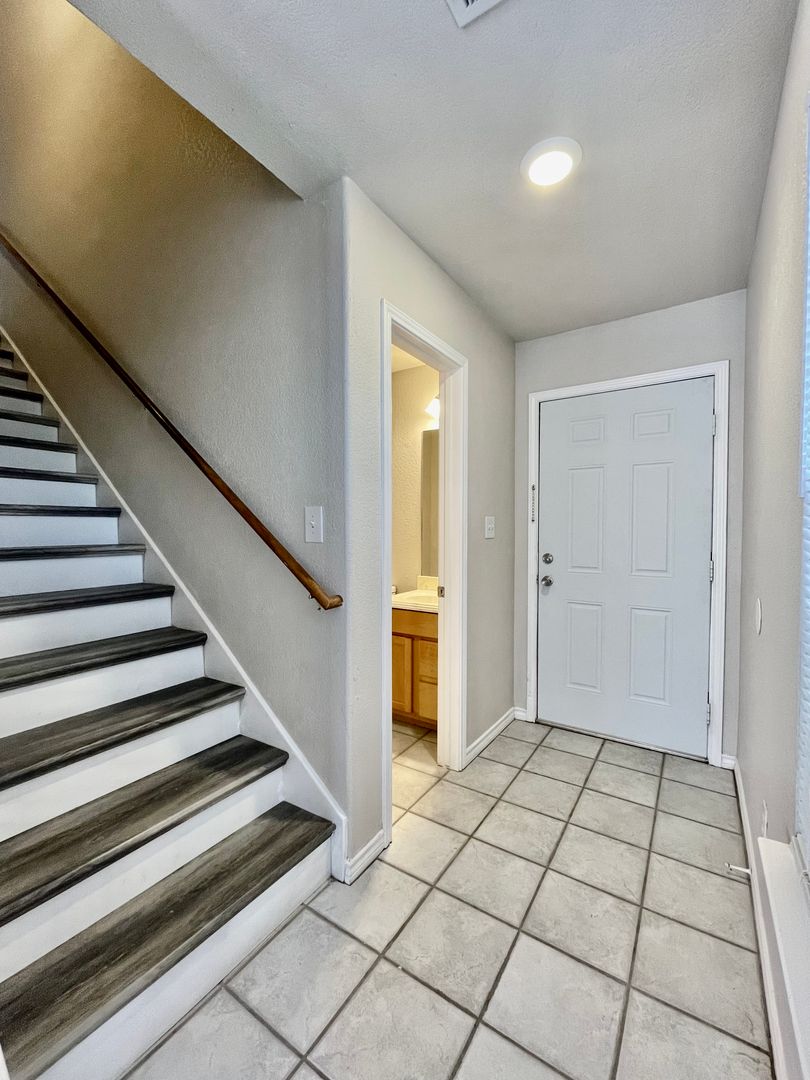Spacious 3-bedroom, 2.5-bathroom home nestled in the highly sought-after Castle Forest subdivision of San Marcos, Texas. This elegant home offers 1,449 square feet of thoughtfully designed living space, featuring vinyl plank flooring and tile throughout, spacious primary bedroom upstairs with multiple walk in closets, and a fully fenced backyard—perfect for both relaxation and entertaining. Situated on a generous ~8,580 square foot lot, the property provides ample outdoor space for gardening, play, or for family gatherings and outdoor activities. Location is everything, and this home excels with its exceptional surroundings. Just a short stroll away, you'll discover Franklin Square Park, a 4.5-acre oasis equipped with picnic tables, a playground, and serene walking paths—perfect for family outings and leisurely afternoons. Jaycees Park is also nearby, offering peaceful walking and running trails amidst lush greenery, providing a tranquil retreat for outdoor enthusiasts. Adding to the allure, residents have direct access to the Purgatory Creek River Recharge Natural Area, a pristine environment where you can immerse yourself in nature. Whether you're hiking, bird-watching, or simply enjoying the scenic views, this natural area offers a perfect escape right at your doorstep. With its prime location, beautiful amenities, and access to some of San Marcos's finest parks and natural areas, this home truly has it all.